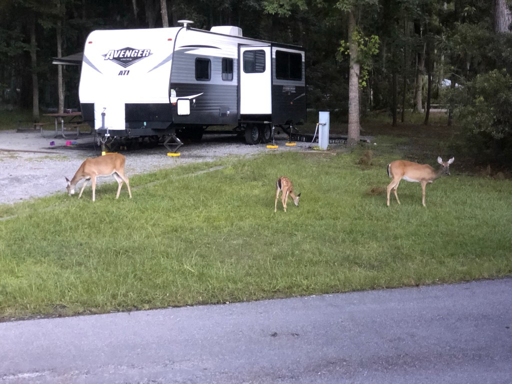 Our 2 weeks in Savannah had a little of everything in it. We were camped at Skidaway Island State Park which was a 10 out of 10 as far as beauty goes. Although Kimberly traveled most of the time we were there, I was able to do a lot more with my vroom vroom (lectric XP). I could get to the grocery store and drug store and pub and get a haircut all from Skidaway Island State Park. That was perfect. And, Mollie and I got into a great vroom vroom routine where she just sits and waves like the queen she is.