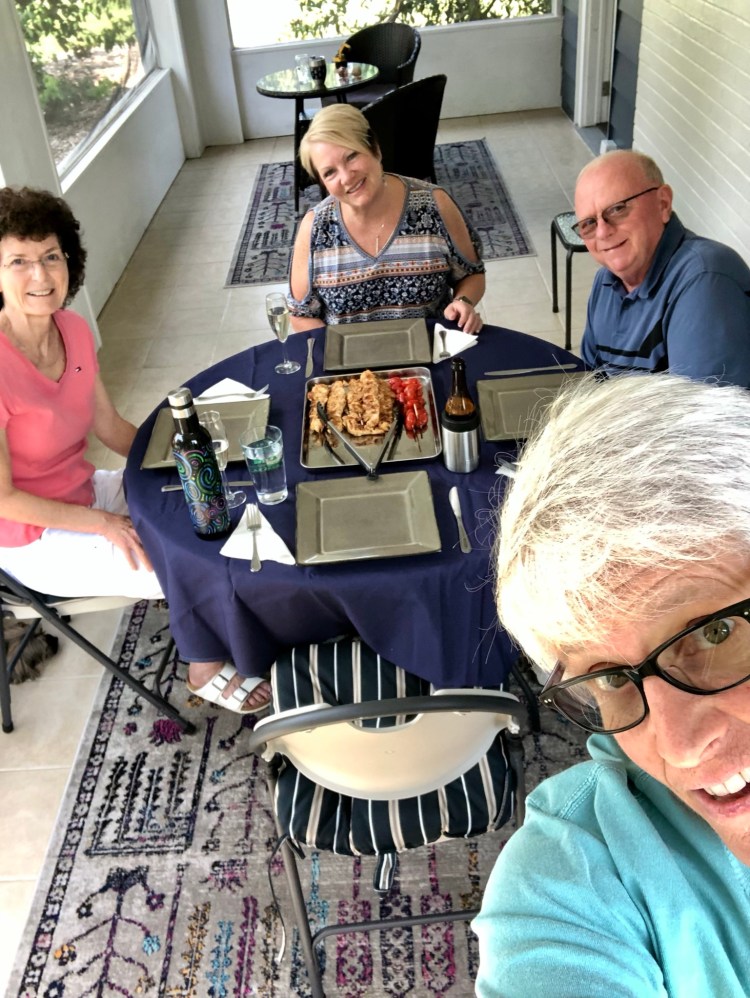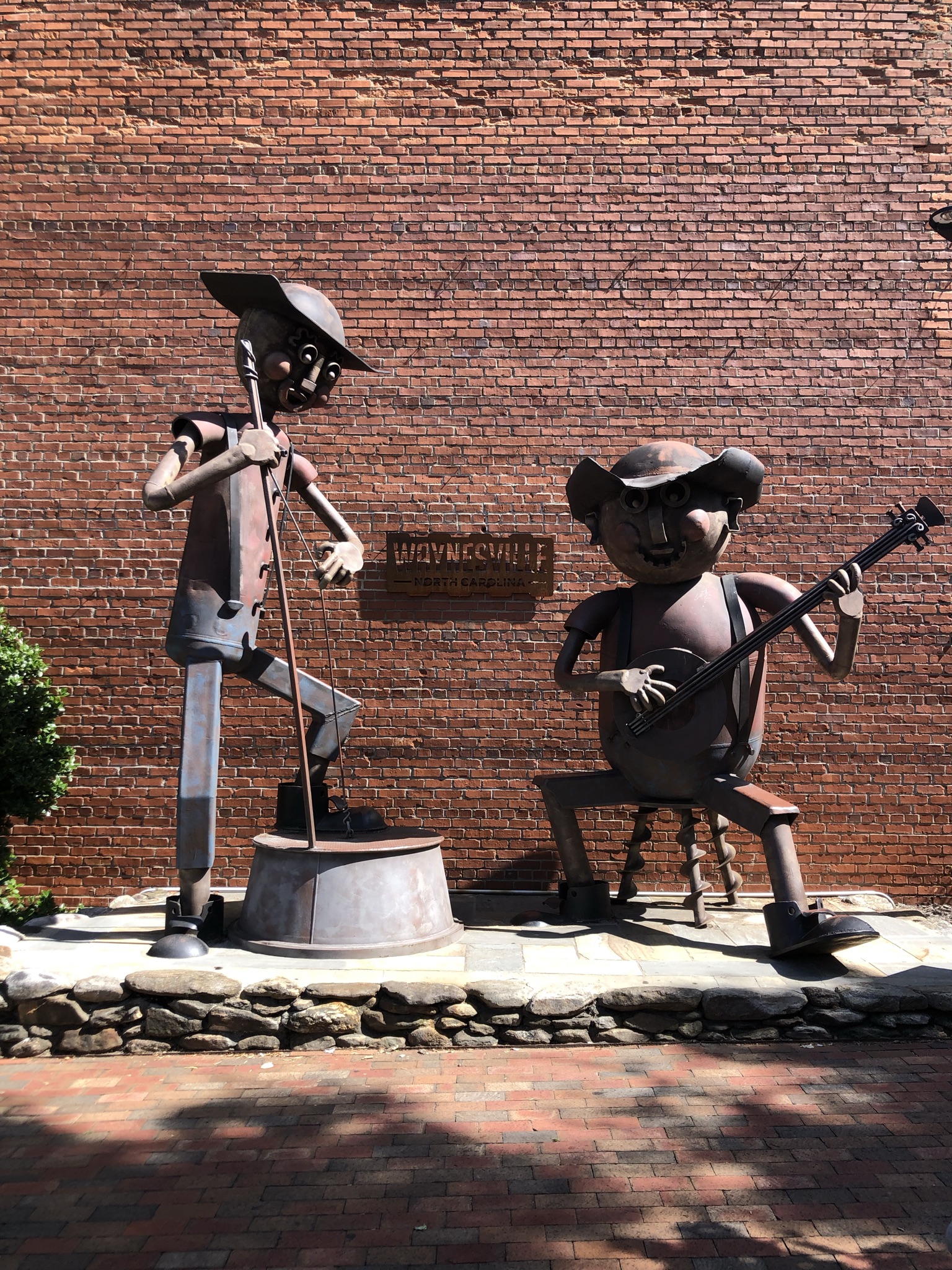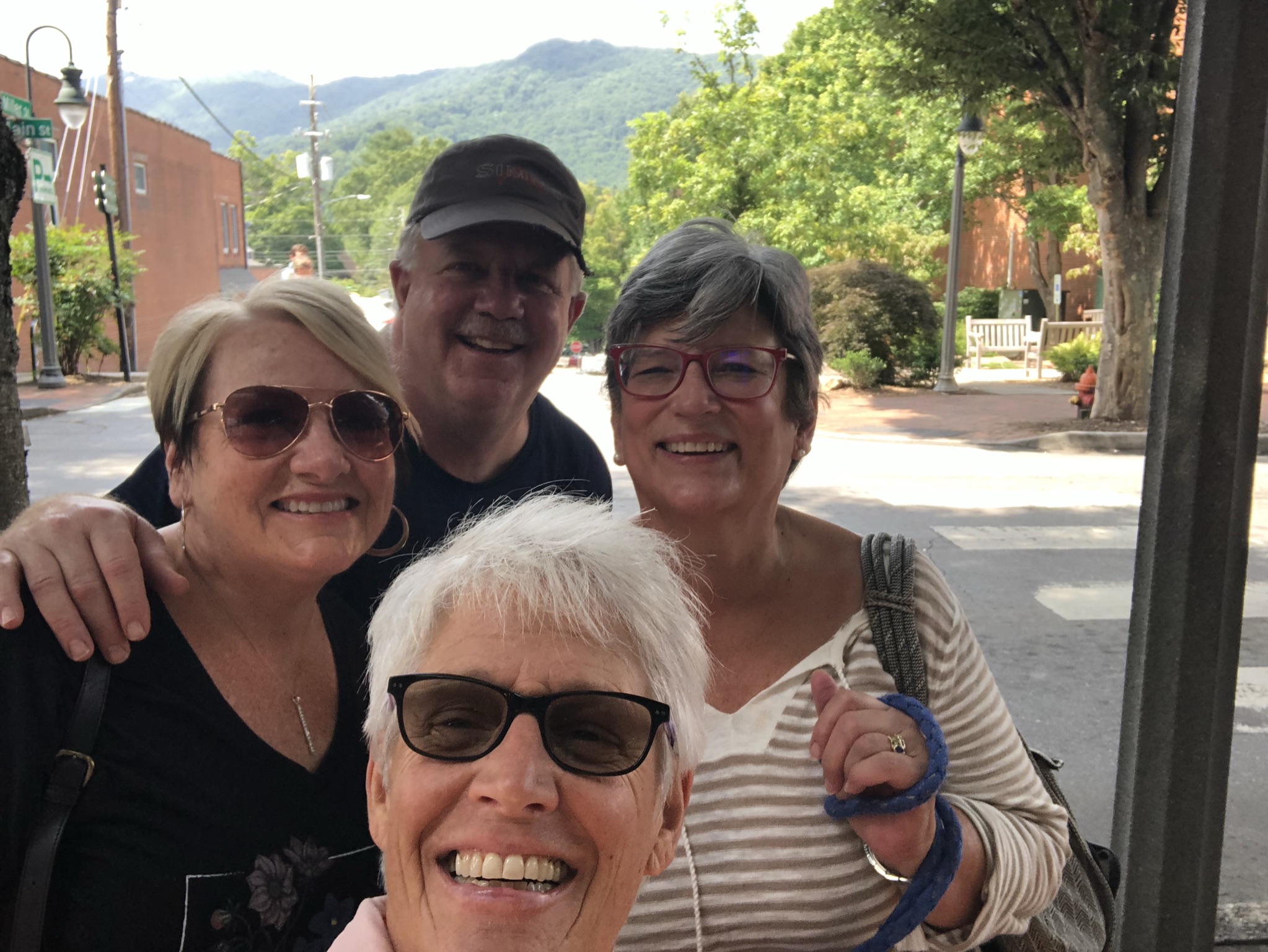 I will start by backing up to the day before we left Old Fort. I should have shared this story then but I totally forgot. We had been there a month and had tried and failed to see our cousins Judith and Paul about 3 times. We just couldn’t make it work. So, the day before departure, with a very short window of time, we met at a great restaurant in Waynesville, NC. The place was called The Sweet Onion. Kimberly and I were quite proud of our lunch choice, which turned out to be delicious and cozy/quaint right in the little town square. Judith and Paul pull up, a tad frazzled, with 2 GIANT dogs and some story about a renovated motel and a lost wallet. Paul begins roaming through the town of Waynesville practically begging anyone to keep his dogs while we ate. NOT HAPPENING. So Judith and Paul just took turns ”driving the dogs around” or moving the car. We still had a wonderful meal even though Paul and Judith had no wallet and two GIANT DOGS. We strolled around Waynesville a bit before heading back to breakdown camp.