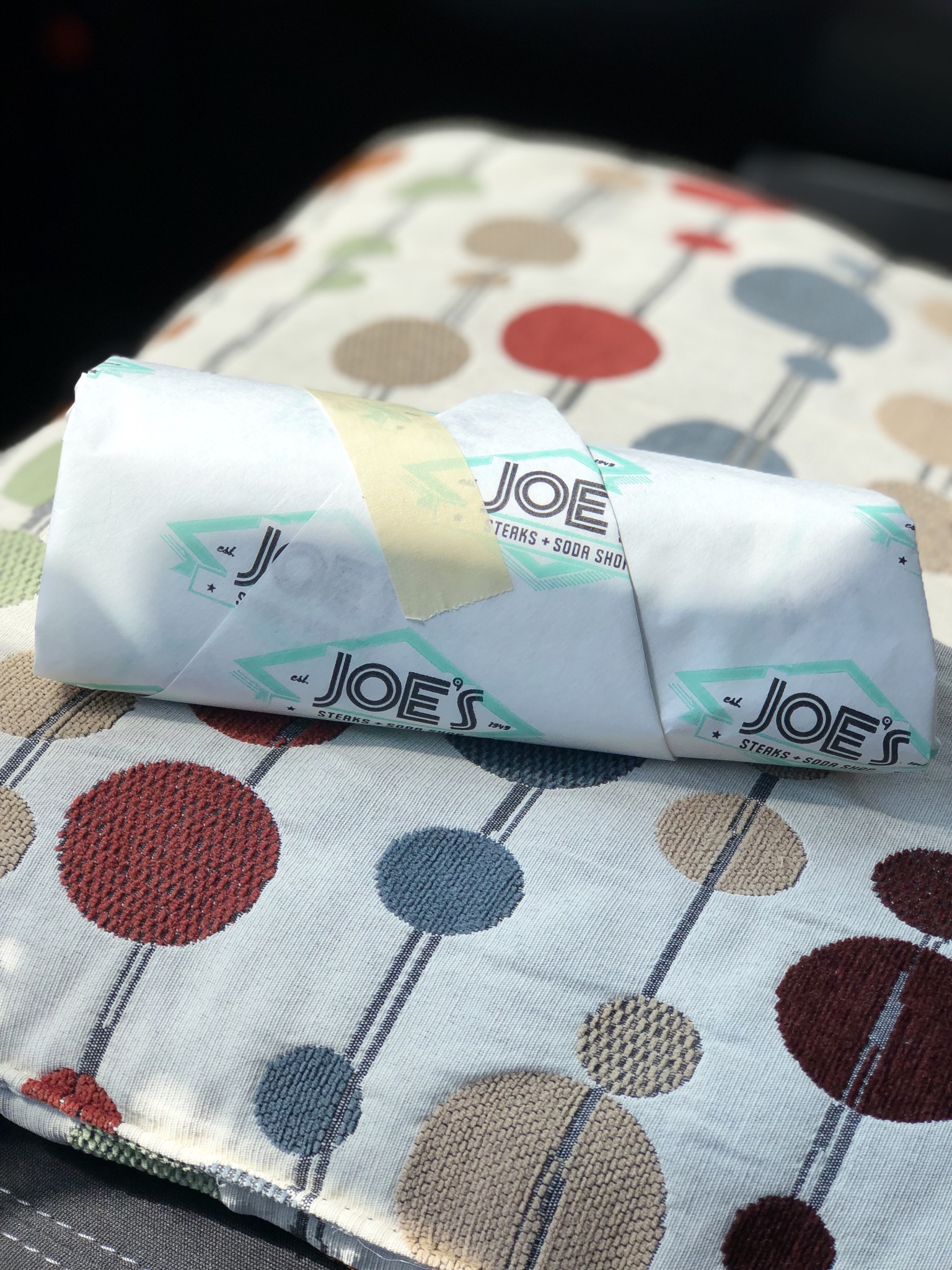 Elkton was a one week stay so on Friday I had to drive back into Philly to pick up Kimberly. I could hear my Dad in my ear saying ”lets find the best cheesesteak”. So I did some research and picked my spot…right in the streets of Philadelphia. I drove 15 minutes past the airport, into the hood, for the best cheesesteak. I parked on the street and walked a few blocks to find the walk up window at “Joes steaks and sodas” established in 1949. I walk up to the window, hearing Pop in one ear saying ”onions on mine”. So I order 2; one with onions. I proudly walked back to my car, past the massage parlor and the gun shop, to devour the best cheesesteak ever with Pops sandwich sitting in the passenger seat next to me. And then I went to the airport.