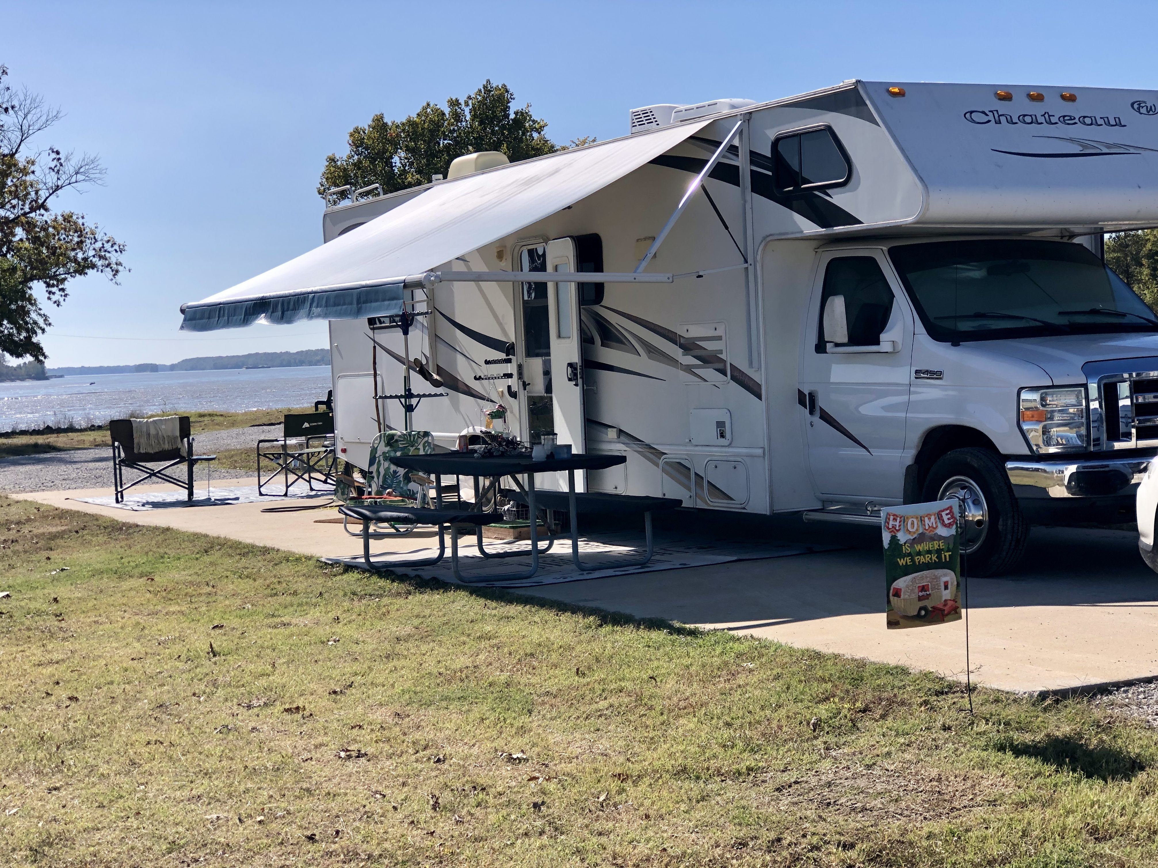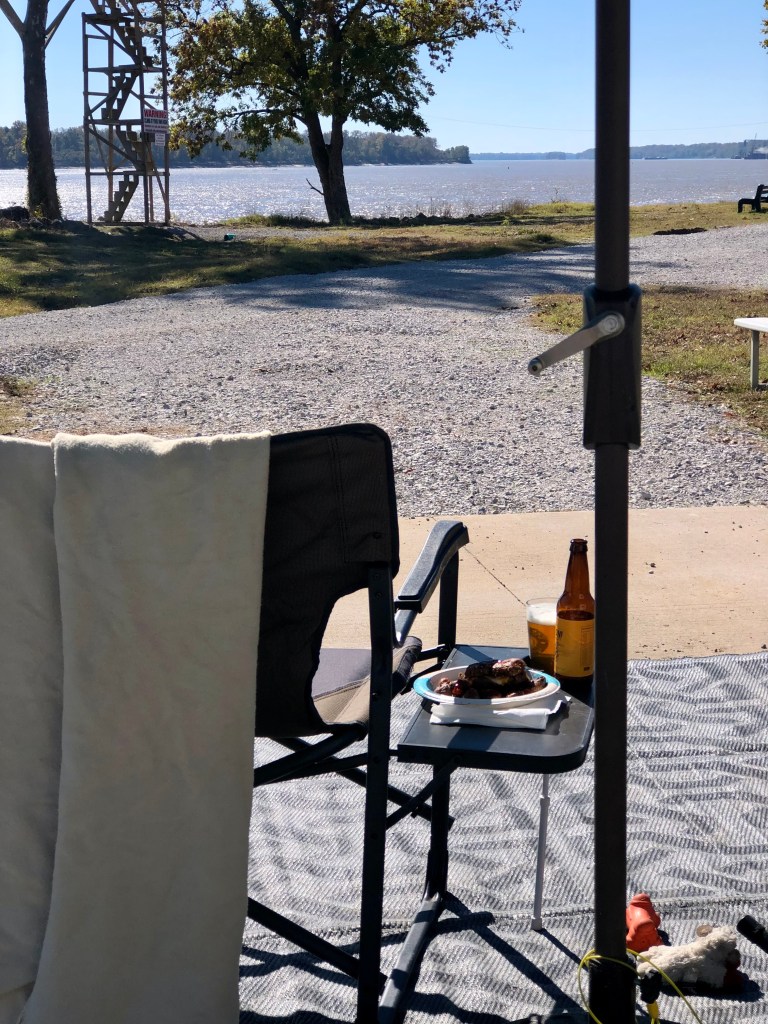 We left Columbus-Belmont a week early since Kimberly had 10 days off and we were getting cold. We were reserved at Tom Sawyer RV park for 2 weeks but they were able to find us a spot for the early week. After one week in site 112, we moved about 50ft. away to site 101; right on the Mississippi. This place is awesome.