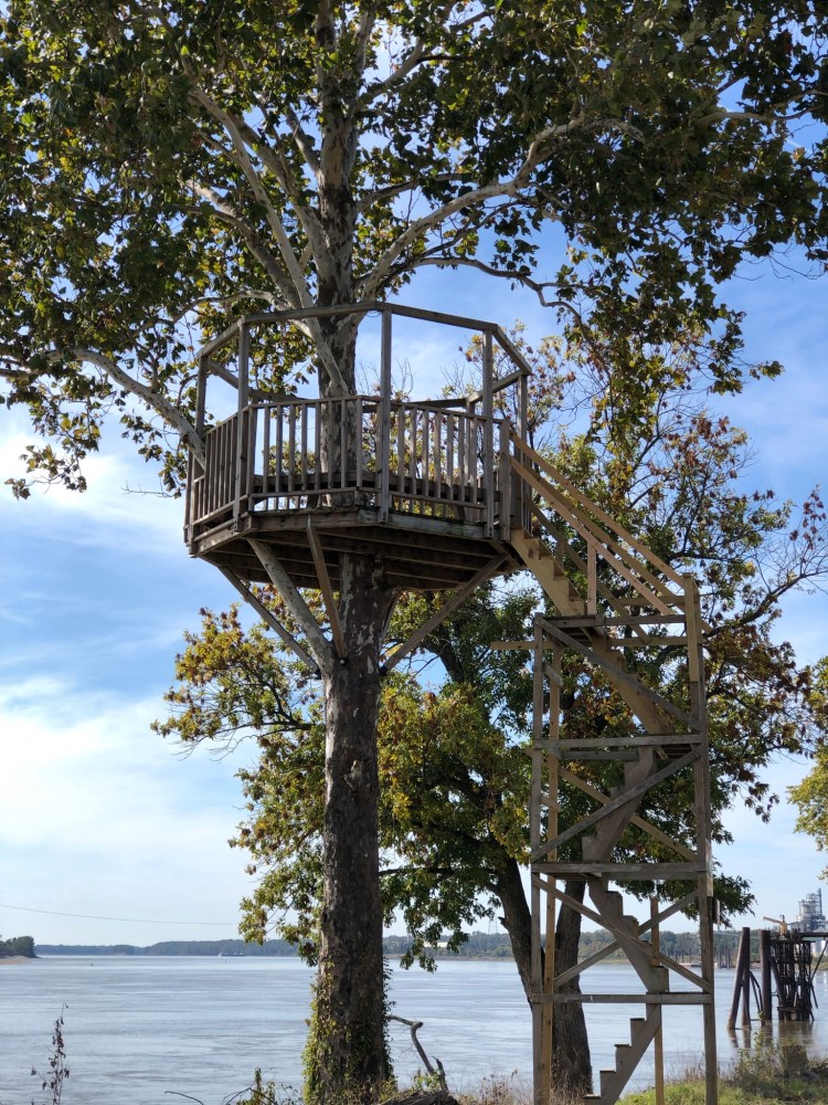 Tom Sawyer RV park is in West Memphis, AK but we could see Memphis, TN from our spot here on the river. We were less than 30 minutes from all the highlights which was perfect for sunsets, sunrises, and barge watching. This RV park has treehouses throughout the park. I did not even know that when I booked it but what an awesome surprise! I love treehouses and Kimberly sort of loves them?