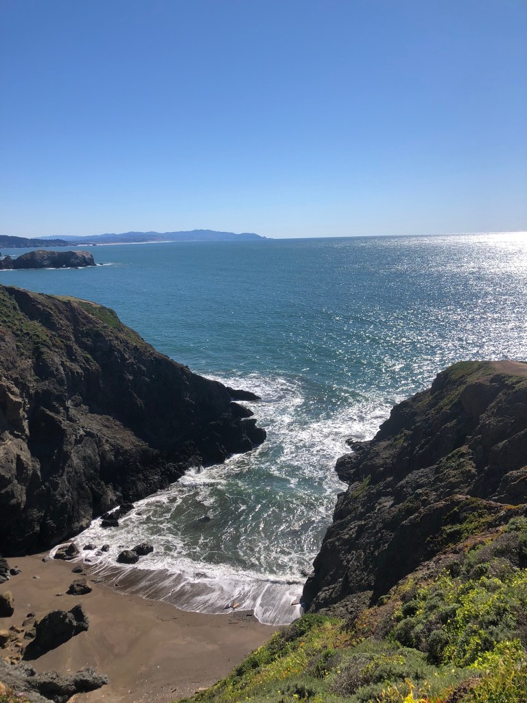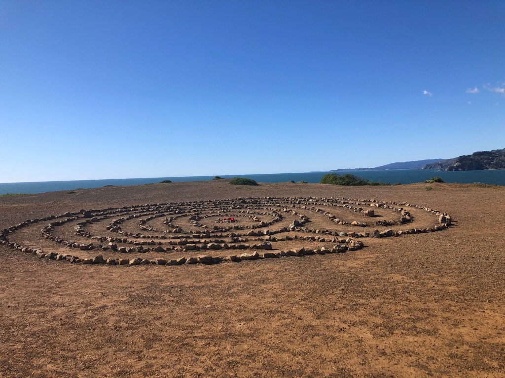 My trip to San Francisco was way better than I could have ever hoped for. I hadn’t had a break from Mollie and Yolo in many months and who knew how much I needed it? My dear friend and fellow Ho, Helen, was the best hostess ever.  She too needed a break from her world and I sort of forced that on her. But we quickly made a list of β€œmust do’s” and proceeded to enjoy every moment of our time. We made it to the Marin Headlands and Rodeo Beach one day where we found a labyrinth atop a cliff overlooking the Pacific Ocean. It was an amazing and magical day as I watched my anxiety blow from the center of the labyrinth into the cold, crisp, air and down the cliffs to the ocean. Exactly the re-centering I needed.