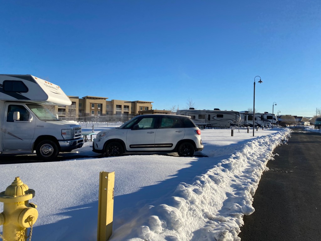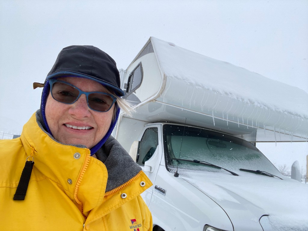 So, even though we were settled in magical and beautiful Arizona, I took a 5 day reprieve in San Francisco. And, Kimberly and Mollie spent their first time alone together in Yolo. Guess what happened? SNOW STORM happened. I had prepared Yolo for that potential and Kimberly and Mollie were just fine. So, just for the record, my β€œFlorida Girl” wife just managed her first snow storm, living in a 31’ RV, with a 10 pound puppers. I was so proud!