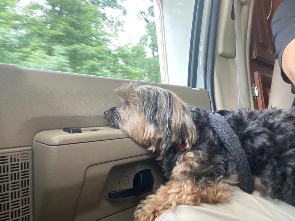That’s when I started searching campgrounds near Cassandra’s house so we could have a month to find a home. I found Grandview Camping and Cottages in Moodus, CT. Kimberly and I are here now with Mollie. It is nestled in the beautiful NE rolling hills and is peaceful and serene. It’s also 34 minutes from Cassandra’s house. I will begin to look for rentals near Wethersfield next week and we will see Catherine today.